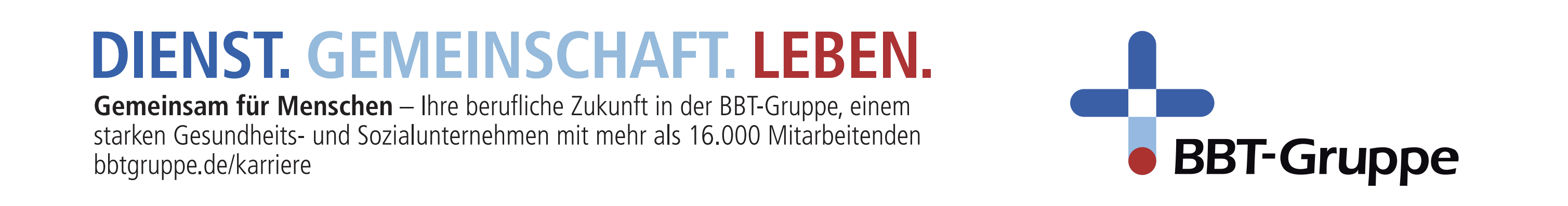 Das Christliche Klinikum Paderborn gehört zur BBT-Gruppe, einem der größten freigemeinnützigen Träger im Gesundheits- und Sozialwesen in Deutschland – mit Krankenhäusern, Pflege- und Sozialeinrichtungen in vier Bundesländern. Was uns alle verbindet? Die Überzeugung, dass im Gesundheitswesen nicht nur Technik und Abläufe zählen, sondern vor allem der Mensch. Für sie schaffen wir ein Umfeld, in dem Sinn, Vertrauen und gute Rahmenbedingungen zusammenkommen.